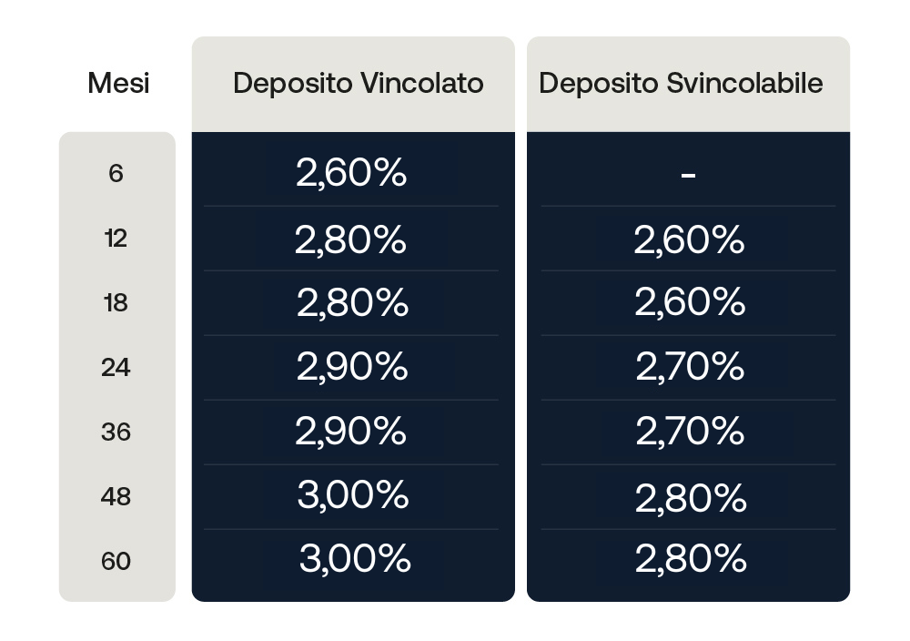 Scopri la tipologia di Deposito più adatta alle tue esigenze di risparmio, scegliendo tra Deposito Vincolato, Deposito Svincolabile e il nuovo Deposito Flessibile.